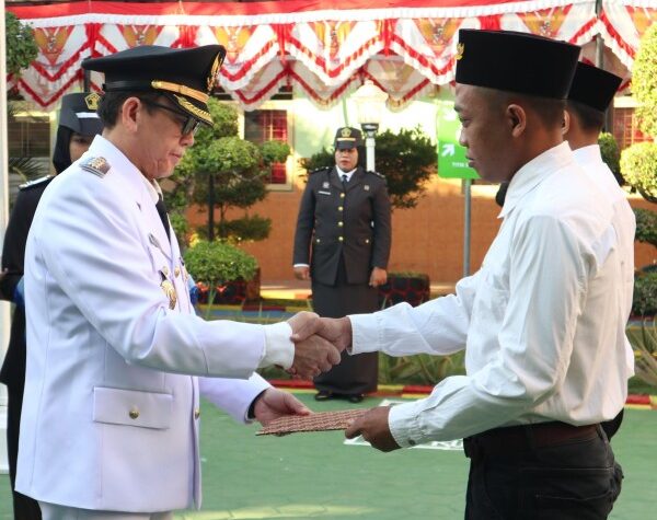 Bojonegoro – Upacara penurunan bendera Merah Putih dalam rangka peringatan HUT ke-79 RI di alun-alun...