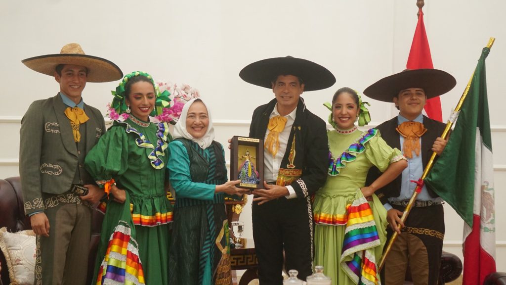 Bupati Bojonegoro Anna Mu’awanah memberi sambutan hangat kepada delegasi 4 negara dalam acara Bojonegoro Thengul International Folklore Festival (B-TIFF). Sambutan Bupati mencerminkan sikap kebhinekaan dalam menjalin kerja sama antar negara.