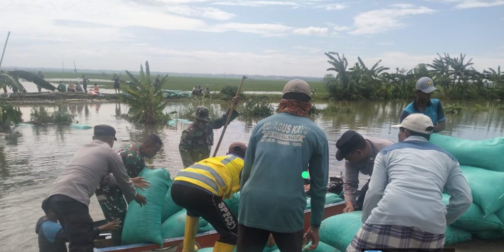 Untuk mengatasi dampak banjir, warga setempat bersama aparat Kepolisian Polsek Kanor dan Koramil Kanor melakukan perbaikan tanggul secara gotong royong. Mereka menggunakan bambu dan karung berisi tanah untuk menutup lubang di tanggul yang jebol, berusaha agar air tidak meluas lebih jauh ke area persawahan lainnya.(sr/rn)