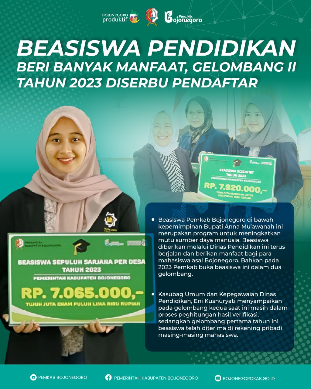 Ragamnusantara.id – Program beasiswa pendidikan yang dicanangkan oleh Pemerintah Kabupaten Bojonegoro terus berlanjut dengan dampak positif bagi masyarakat. Selain membantu meredakan beban biaya kuliah, program ini juga dirancang agar mudah diakses dan transparan dalam pelaksanaannya. Pada tahap pendaftaran gelombang kedua tahun 2023, tercatat antusiasme yang tinggi dari calon penerima beasiswa.