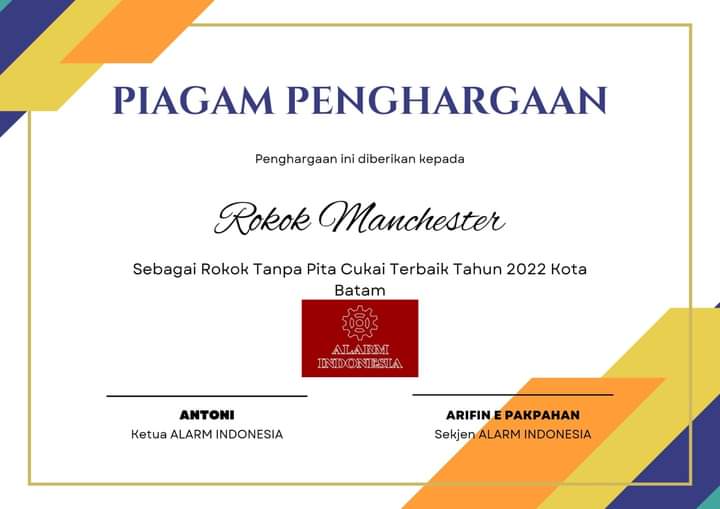 Menurut Antoni, piagam tersebut telah dikeluarkan oleh ALARM Indonesia sejak lama, namun rokok ilegal merk Manchester yang dianggap terbaik dalam kategori ini masih beredar bebas di Kota Batam hingga saat ini. Pengakuan ini disampaikan pada Jum’at, 21 Juli 2023.