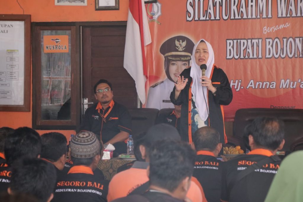 Denpasar- Bupati Bojonegoro, Anna Mu’awanah sambung tali silaturahmi dengan Saudara warga Bojonegoro asli yang merantau dan bermukim di Provinsi Bali dalam Wadah Paguyuban Segoro Bali (Sedulur Bojonegoro), pada Sabtu siang ini (19/03). Paguyuban Segoro Bali sendiri merupakan wadah berkumpul dan komunikasi bagi warga Bojonegoro yang merantau di Provinsi Bali guna menjalin silaturahmi dan kekeluargaan di perantauan.