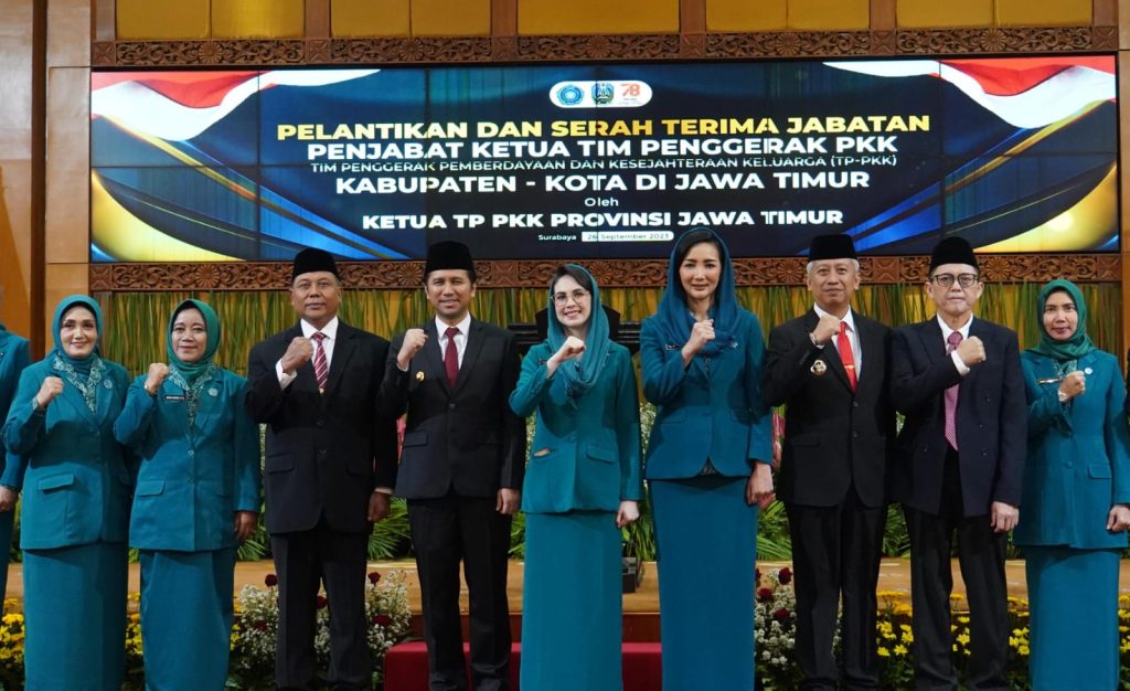 Ragamnusantara – Ketua Tim Penggerak PKK Jawa Timur, Arumi Bachsin secara resmi melantik Dian Adiyanti Adriyanto sebagai Pj Ketua TP PKK Bojonegoro, Selasa (26/9/2023) di Ruang Hayam Wuruk Kantor Gubernur Jawa Timur Lantai VIII. Pelantikan ini bersama 11 ketua TP PKK se-Jawa Timur.