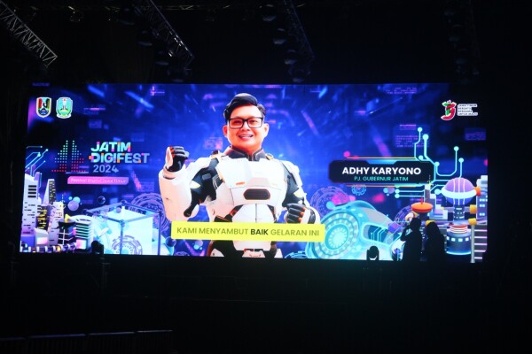 Pj Gubernur Jawa Timur, Adhy Karyono dalam sambutannya, melalui teknologi Video AI, menyampaikan bahwa Jatim Digifest 2024 ini ditunjukkan lewat pemeran inovasi dan layanan publik digital, serta berbagai jenis workshop dan kompetisi di bidang digital.