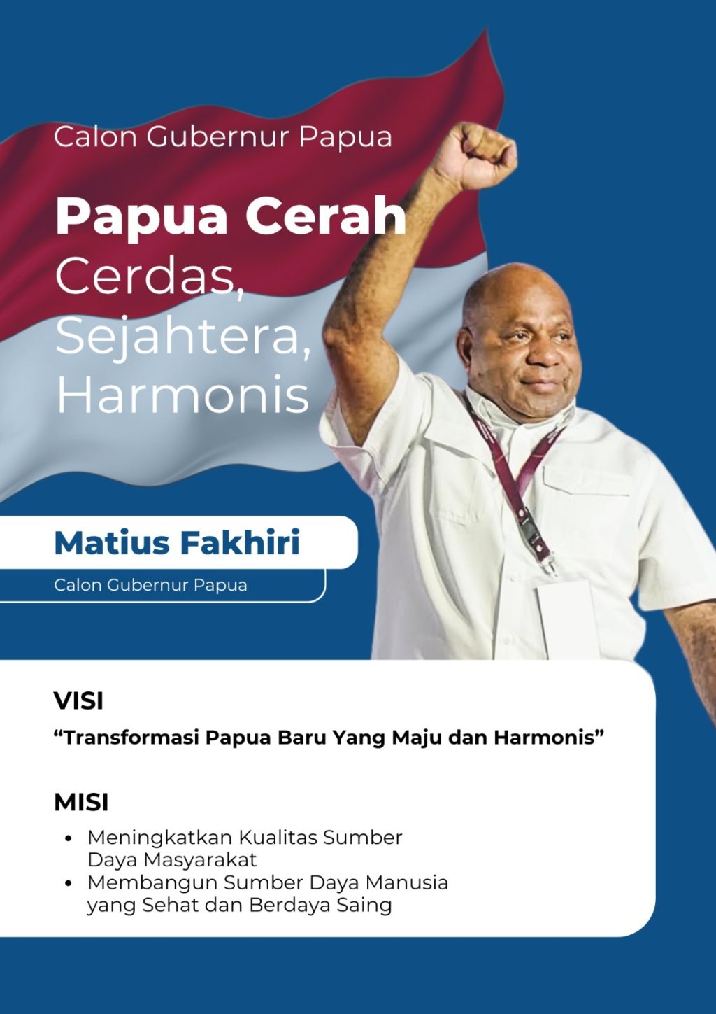 Matius Fakhiri, yang sebelumnya dikenal sebagai tokoh kepolisian dengan pengalaman panjang di wilayah timur Indonesia, menegaskan bahwa Papua membutuhkan pemimpin yang tidak hanya memahami kondisi sosial dan budaya, tetapi juga mampu menghadirkan solusi strategis di bidang pembangunan dan pemberdayaan masyarakat.