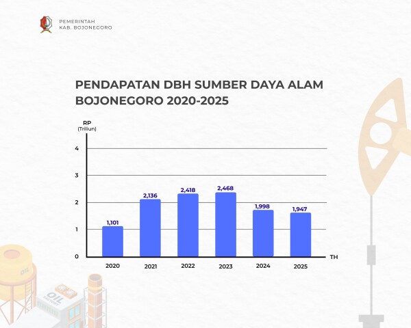 Ragamnusantara.id, – Sebagai salah satu daerah penyumbang energi nasional, Kabupaten Bojonegoro mempunyai Dana Bagi Hasil Sumber Daya Alam (DBH SDA) relatif cukup tinggi. Hal itu tampak dari postur Anggaran Pendapatan dan Belanja Daerah (APBD) Kabupaten Bojonegoro. Dalam waktu enam tahun terakhir, penerimaan DBH SDA Bojonegoro menunjukkan tren dinamis seiring dengan fluktuasi harga komoditas global dan tingkat produksi di lapangan.