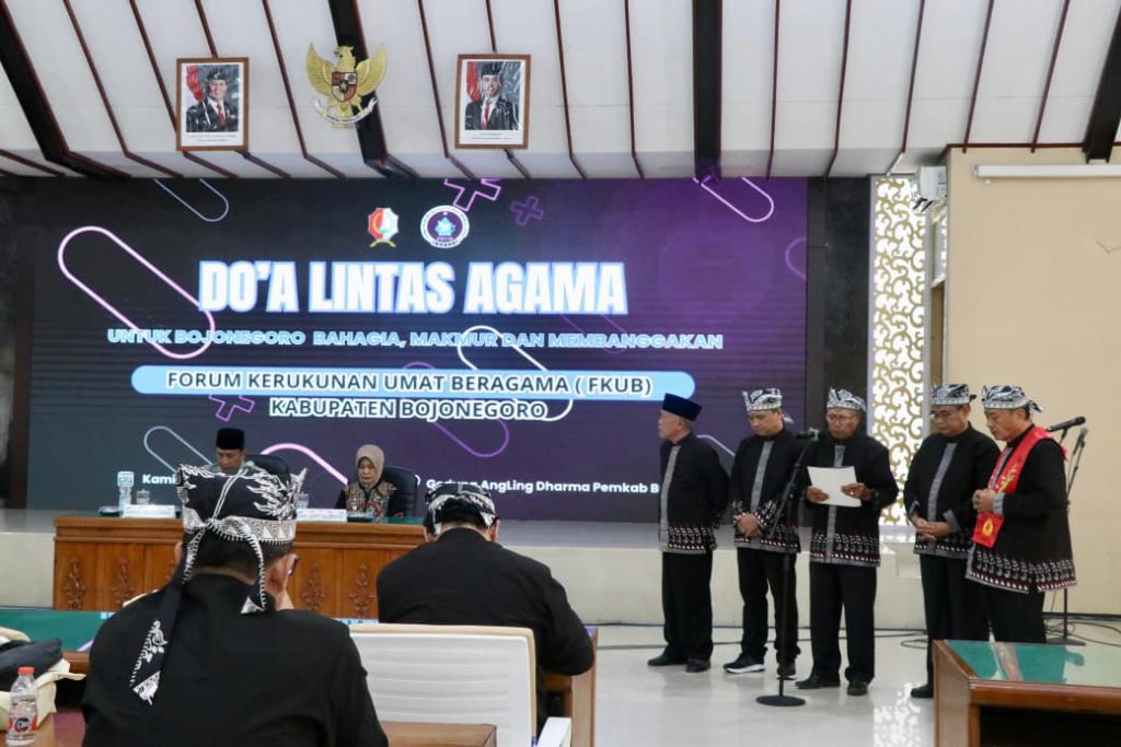 Bojonegoro, — Pemerintah Kabupaten Bojonegoro resmi mengukuhkan Forum Kerukunan Umat Beragama (FKUB) Kabupaten Bojonegoro masa bakti terbaru dalam sebuah acara yang berlangsung pada Kamis, 27 November 2025 di Ruang Angling Dharma. Pengukuhan dilakukan langsung oleh Bupati Bojonegoro, Setyo Wahono, didampingi Wakil Bupati, Nurul Azizah, serta dihadiri anggota FKUB dari lima agama: Islam, Kristen, Katolik, Hindu, dan Konghucu.
