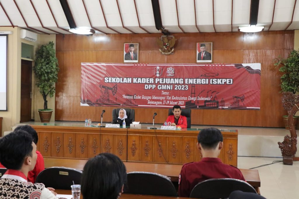 Melihat tentang permasalahan-permasalahan energi yang akan di hadapi di masa mendatang, Dewan Pengurus Pusat (DPP) GMNI (Gerakan Mahasiswa Nasional Indonesia) membuka Sekolah Kader Pejuang Energi bagi kader. Dengan mengangkat tema “Peranan Kader Bangsa Mencapai Visi Kedaulatan Energi Indonesia”, Sekolah Kader Pejuang Energi diikuti 50 peserta dari seluruh Indonesia. Pembukaan Sekolah Kader Pejuang Energi dibuka secara langsung oleh Bupati Bojonegoro Anna Mu’awanah dengan ditandai pemukulan gong bertempat di Gedung Angling Dharmo Pemkab Bojonegoro, Jumat 17/03/2023.