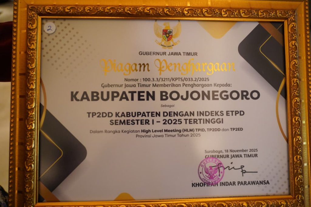 Penghargaan tersebut menjadi bukti komitmen Pemerintah Kabupaten Bojonegoro dalam memperkuat layanan publik melalui optimalisasi mobilitas daerah serta percepatan transformasi digital, khususnya dalam sistem pemerintahan dan layanan transaksi elektronik.