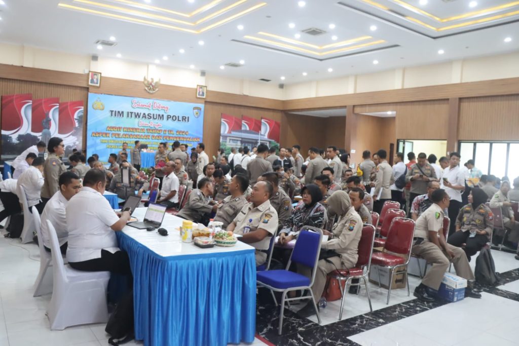 Tampak hadir Tim Itwasum Polri yang pimpin oleh Brigjen Pol. Drs. Sjamsul Sidiq, MH dan rombongan yakni Kombes Pol Guritno Wibowo, Kombes Pol Johanes Pangihutan Siboro, Kombes Pol Junaidi Nur, SH, SIK, MH, Kombes Pol Irwan, SIK, Kombes Pol Ramon Zamora Ginting, SIK, Kombes Pol Eko Iswantono dan Penata Tk. I Fadiyanto (BPKP).