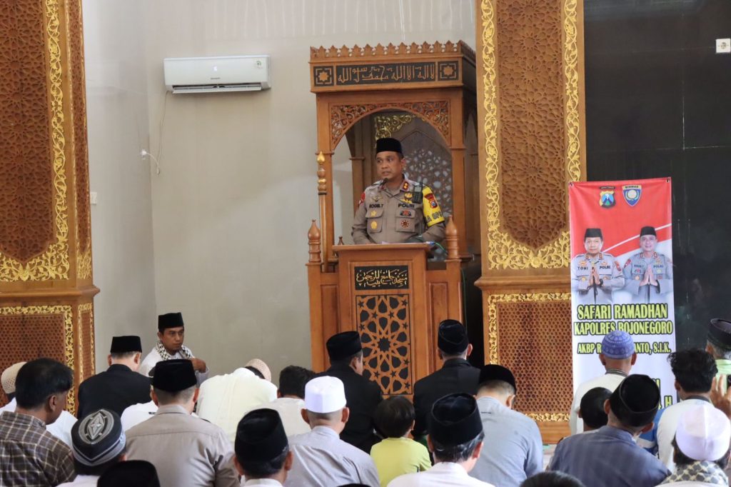 Bojonegoro – Kapolres Bojonegoro, AKBP Rogib Triyanto, SIK menggelar Safari Ramadhan sekaligus shalat Jum’at di Masjid Baiturrahman Kelurahan Klangon Kecamatan Kota Bojonegoro, jum’at(24/3/2023).