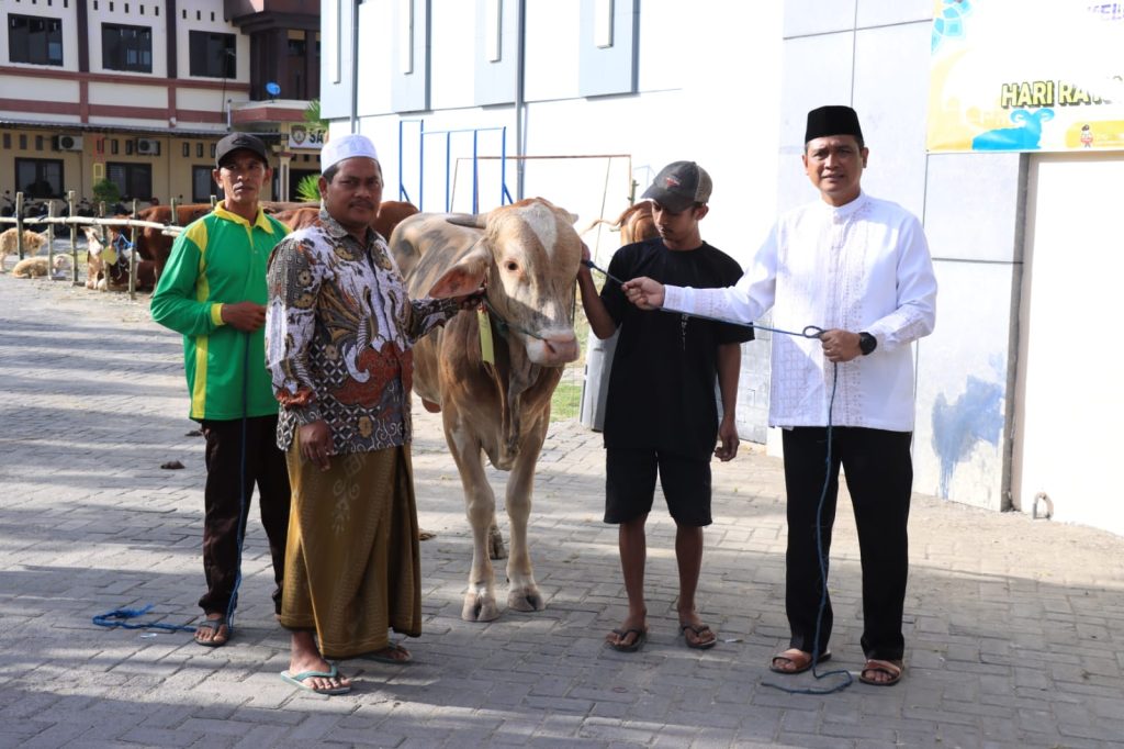 Kapolres Bojonegoro menyerahkan hewan Qurban kepada perwakilan Pondok Pesantren (Ponpes), pengurus Masjid/Musholla, organisasi kemahasiswaan, instansi terkait, dan tokoh agama di Kabupaten Bojonegoro. Hewan-hewan tersebut akan disembelih bersama dengan masyarakat setempat. Total hewan Qurban yang terkumpul di Polres Bojonegoro adalah 18 ekor sapi dan 26 ekor kambing.