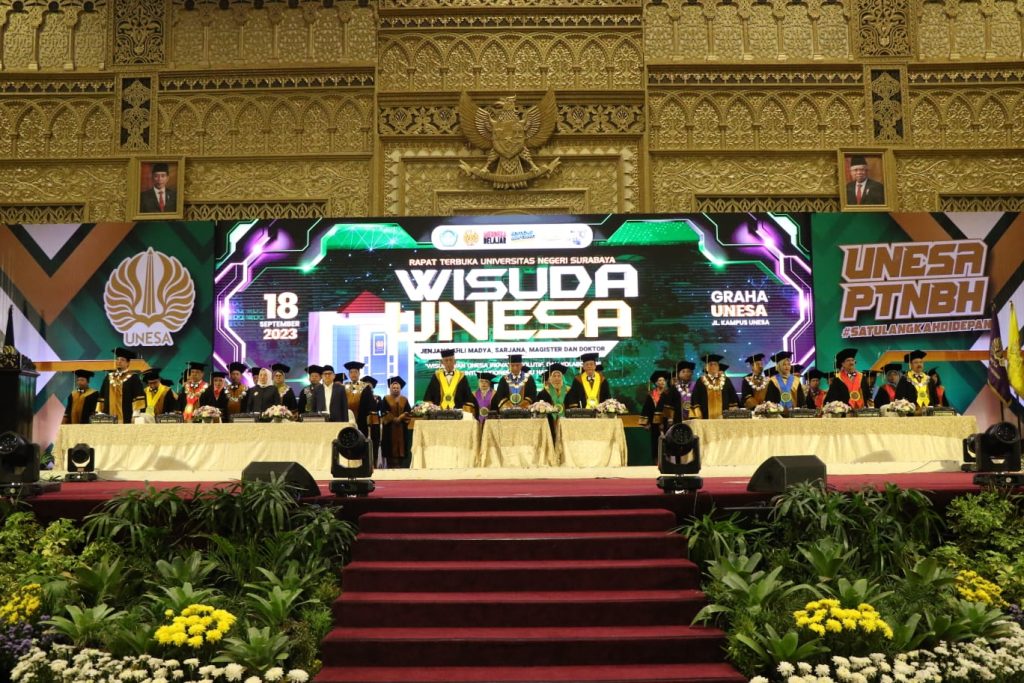 Ragamnusantara – Sebanyak 582 mahasiswa program beasiswa Rekognisi Pembelajaran Lampau (RPL) Desa Bojonegoro di Universitas Negeri Surabaya (Unesa) tersenyum bahagia. Mereka resmi menyandang gelar sarjana dalam acara wisuda di Graha Unesa Kampus Lidah Wetan Surabaya, Senin (18/9/2023)