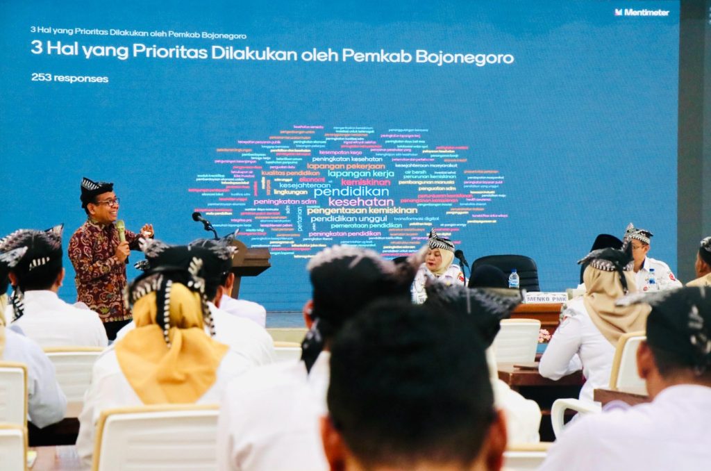 Wakil Bupati Bojonegoro Nurul Azizah menyampaikan Rencana Pembangunan Jangka Menengah Daerah atau RPJMD merupakan dokumen perencanaan pembangunan daerah yang disusun untuk jangka waktu lima tahun. RPJMD ini tentu akan menjadikan suatu topik yang mengangkat permasalahan- permasalahan pembangunan dan merumuskan isu strategis pembangunan, tentu ada permasalahan yang perlu kita selesaikan. Isu strategis Bojonegoro yakni :