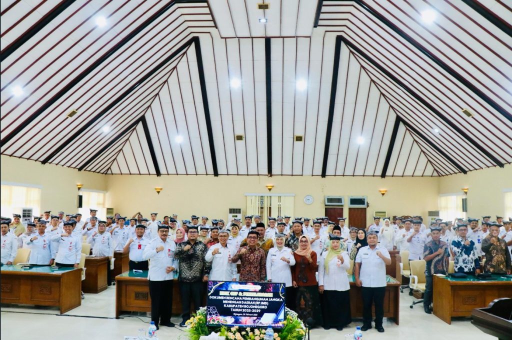 Bojonegoro, – Pemerintah Kabupaten Bojonegoro melalui Bappeda melaksanakan Kick Off dan Penyelarasan Dokumen Rencana Pembangunan Jangka Menengah Daerah (RPJMD) Kabupaten Bojonegoro Tahun 2025-2030, yang bertempat di gedung Angling Dharma Pemkab Bojonegoro, Rabu, (26/2). Acara ini bertujuan untuk mempercepat proses penyusunan dokumen perencanaan pembangunan daerah yang strategis dan berkelanjutan sesuai dengan terwujudnya Bojonegoro makmur dan membanggakan.