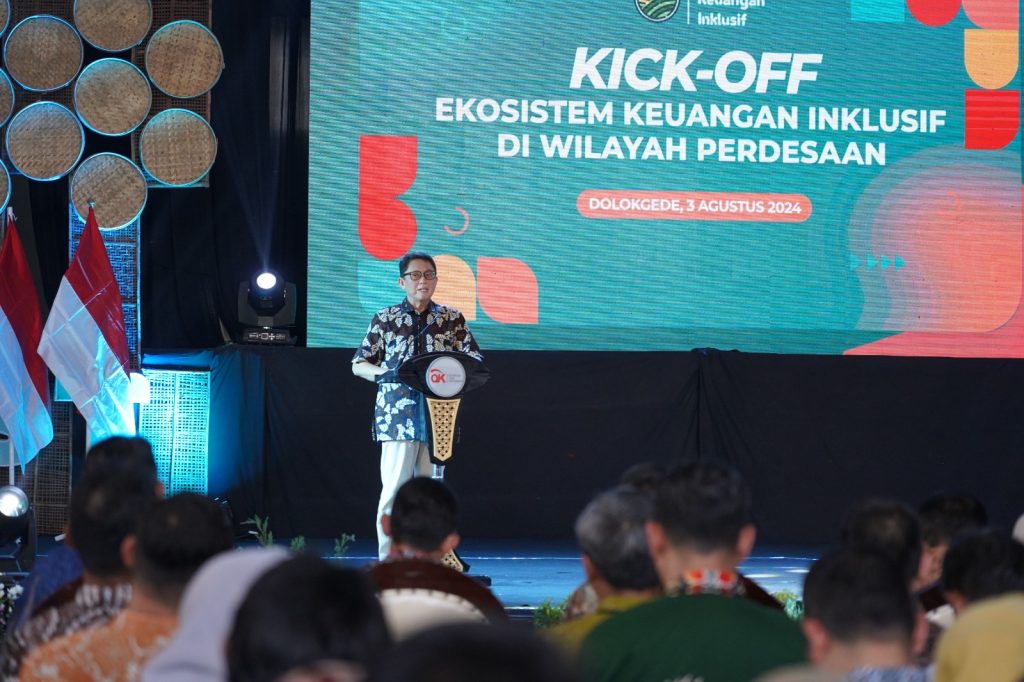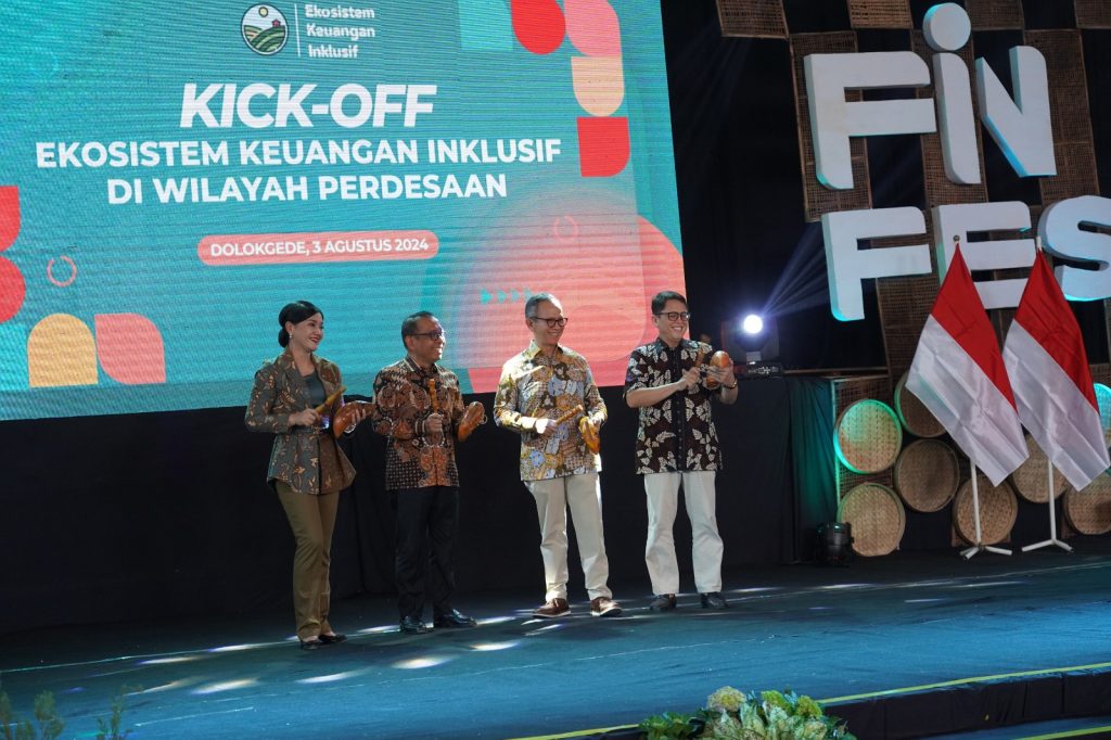 Launching/Kick off Ekosistem Keuangan Inklusif Di Wilayah Perdesaan ditandai dengan pemukulan kentongan bersama oleh Menteri Sekretaris Negara RI Pratikno, Ketua Dewan OJK Mahendra Siregar, Kepala Eksekutif Pengawas Perilaku, Pelaku Jasa Keuangan, Edukasi Dan Perlindungan Konsumen merangkap Anggota Dewan Komisioner OJK Friderica Widyasari Dewi, dan Penjabat Bupati Bojonegoro Adriyanto di GOR Desa Dologede, Sabtu 03/08/2024.