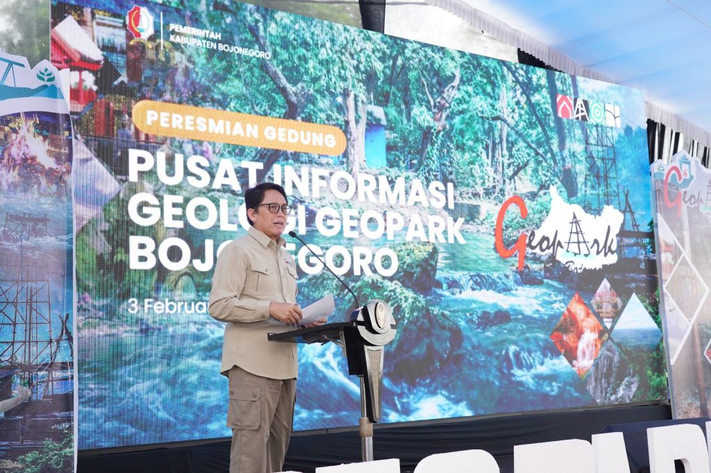 Senin 03 Februari 2025, Penjabat Bupati Bojonegoro secara resmi meresmikan Gedung Pusat Informasi Geologi Geopark Bojonegoro yang berada di Jl. Panglima Soedirman No.24 Kepatihan Kec. bojonegoro (eks gedung Dinas Sosial). Hari ini saya bersama jajaran Forkopimda dan komponen pimpinan di Pemkab Bojonegoro meresmikan Gedung Pusat Informasi Geologi Geopark Di Bojonegoro. “Ini adalah bagian dari usaha kita untuk terus meningkatkan kelas dari Geopark yang kita miliki”, terang Adriyanto.