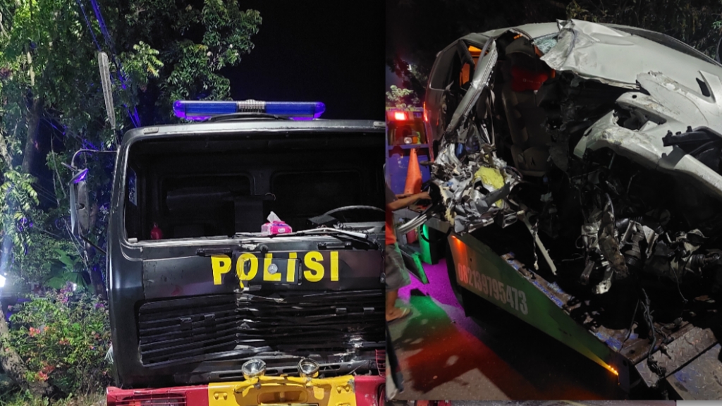 “Mobil innova tersebut tiba-tiba oleng ke kanan dari arah barat dan menabrak truk rombongan Brimob,” ujar Kusnan, warga yang kebetulan di TKP.