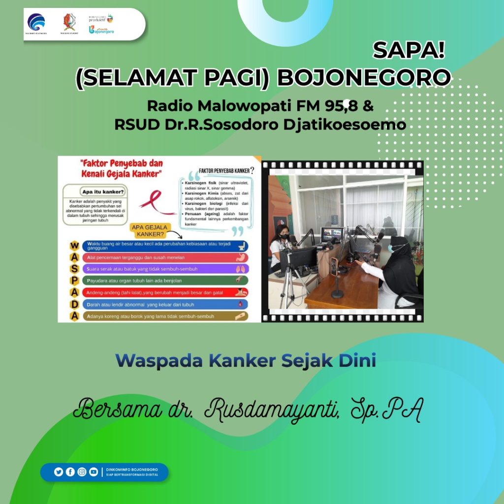 Dipandu penyiar Lia Yunita, SAPA! Malowopati FM menghadirkan narasumber dr. Rusdamayanti, Sp.PA selaku Dokter Spesialis Patologi Anatomi di RSUD Sosodoro Djatikoesoemo Bojonegoro.