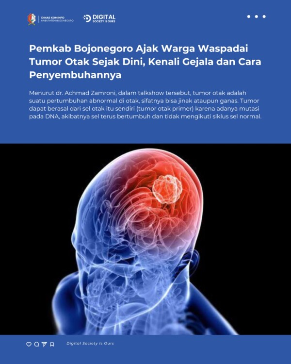 Bojonegoro, – Pemkab Bojonegoro melalui RSUD Soesodoro DJatikoesoemo mengajak warga untuk selalu mewaspadai tumor otak sejak dini. Ajakan ini disampaikan dalam program siar radio SAPA! (Selamat Pagi) Malowopati FM, Rabu (15/01/2024)