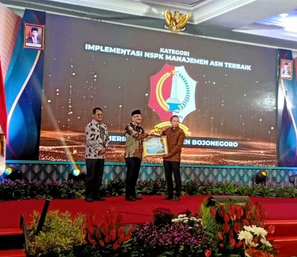Bojonegoro(Ragamnusantara.id) – Pemerintah Kabupaten (Pemkab) Bojonegoro berhasil meraih penghargaan dari Badan Kepegawaian Negara (BKN) Award 2023. Acara pemberian penghargaan berlangsung di Bumi Surabaya City Resort pada Kamis (8/6/2023). Pemkab Bojonegoro berhasil meraih 2 penghargaan dalam BKN Award 2023.