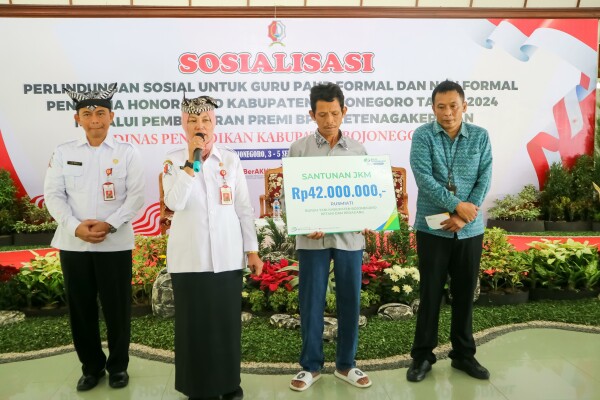 Dalam sambutannya, Sekretaris Daerah Kabupaten Bojonegoro Nurul Azizah menyampaikan bahwa guru PAUD akan mendapatkan perlindungan jaminan sosial melalui BPJS Ketenagakerjaan yang akan dibayarkan melalui APBD Bojonegoro. Salah satu manfaat dari BPJS Ketenagakerjaan, yaitu ketika meninggal dunia, ahli warisnya akan mendapat santunan sebesar Rp 42 juta, juga anaknya mendapat biaya pendidikan sampai perguruan tinggi.