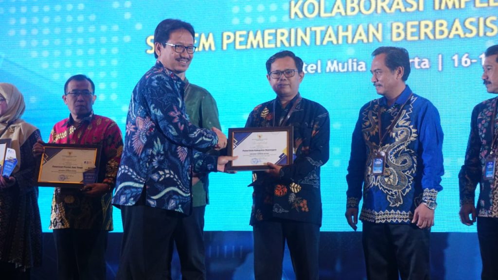 Penghargaan ini diserahkan langsung oleh Kemenkominfo RI kepada Pemkab Bojonegoro yang diwakili oleh Sekretaris Dinas Kominfo Kabupaten Bojonegoro saat Rapat Koordinasi Nasional Kolaborasi Implementasi Sistem Pemerintahan Berbasis Elektronik (SPBE) Nasional di Jakarta. Penghargaan tersebut merupakan salah satu indikator bahwa Kabupaten Bojonegoro telah memanfaatkan SPLP dengan baik.