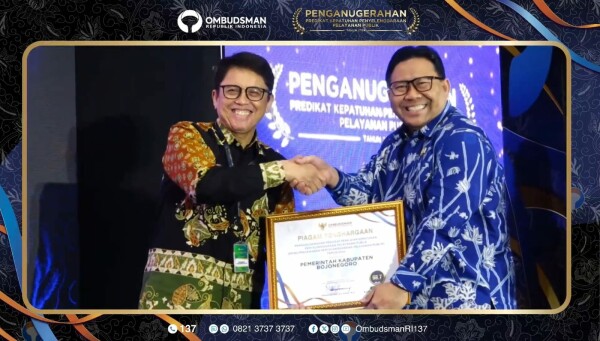 Pemkab Bojonegoro Raih Penghargaan Terbaik Ke-5 Nasional Kepatuhan Penyelenggaraan Pelayanan Publik