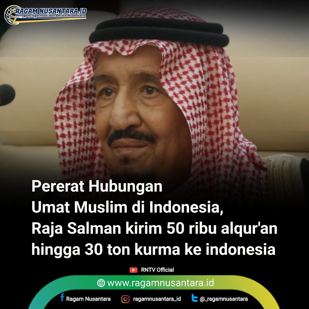 Pererat Hubungan Umat Muslim di Indonesia, Raja Salman kirim 50 ribu alqur’an hingga 30 ton kurma ke indonesia
