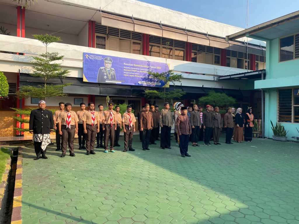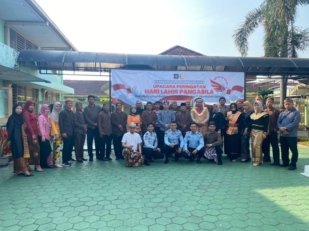 Bojonegoro – Pada tanggal 1 Juni 2023, seluruh petugas dan pejabat struktural, JFU/JFT, yang mengenakan pakaian adat Nusantara, serta beberapa Warga Binaan dengan seragam pramuka, terlihat memenuhi Lapangan dalam Lembaga Pemasyarakatan Kelas IIA Bojonegoro. Mereka berkumpul untuk memperingati Hari Lahir Pancasila. Acara tersebut diadakan pada Kamis (01/06/23).