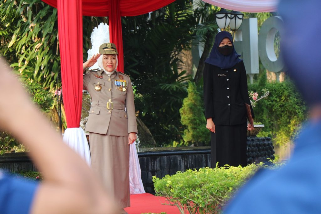 Selesai apel, Bupati perempuan pertama tersebut menyempatkan potong tumpeng yang diberikan kepada Kepala Satpol PP dan Kepala Dinas Damkar sebagai ungkapan rasa syukur atas peringatan HUT hari ini.