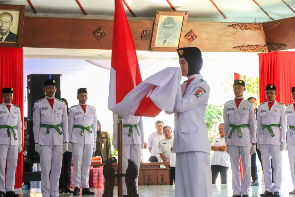 “Dengan Memohon Ridho Tuhan Yang Maha Kuasa. Pada Hari Ini, Rabu Tanggal 14 Bulan Agustus Tahun 2024, Saya Kukuhkan Pasukan Pengibar Bendera Pusaka Tingkat Kabupaten Bojonegoro Tahun 2024, Yang Akan Bertugas Pada Tanggal 17 Agustus 2024. Semoga Tuhan Yang Maha Kuasa Memberikan Rahmat dan Kemudahan Dalam Menjalankan Tugas Negara.” Ucap Adriyanto, Pj. Bupati Bojonegoro.