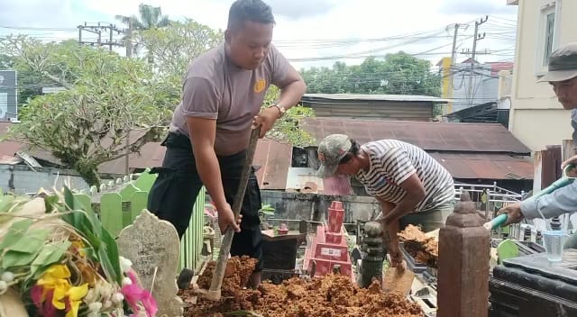 “Pekerjaan saya ini sudah lama, sebelum menjadi polisi,” terang Joko saat ditemui muslim Peng Ah Kelurahan Karang Anyar Kecamatan Sungai Kunjang Samarinda di lokasi pemakaman, kamis (23/3/2023)