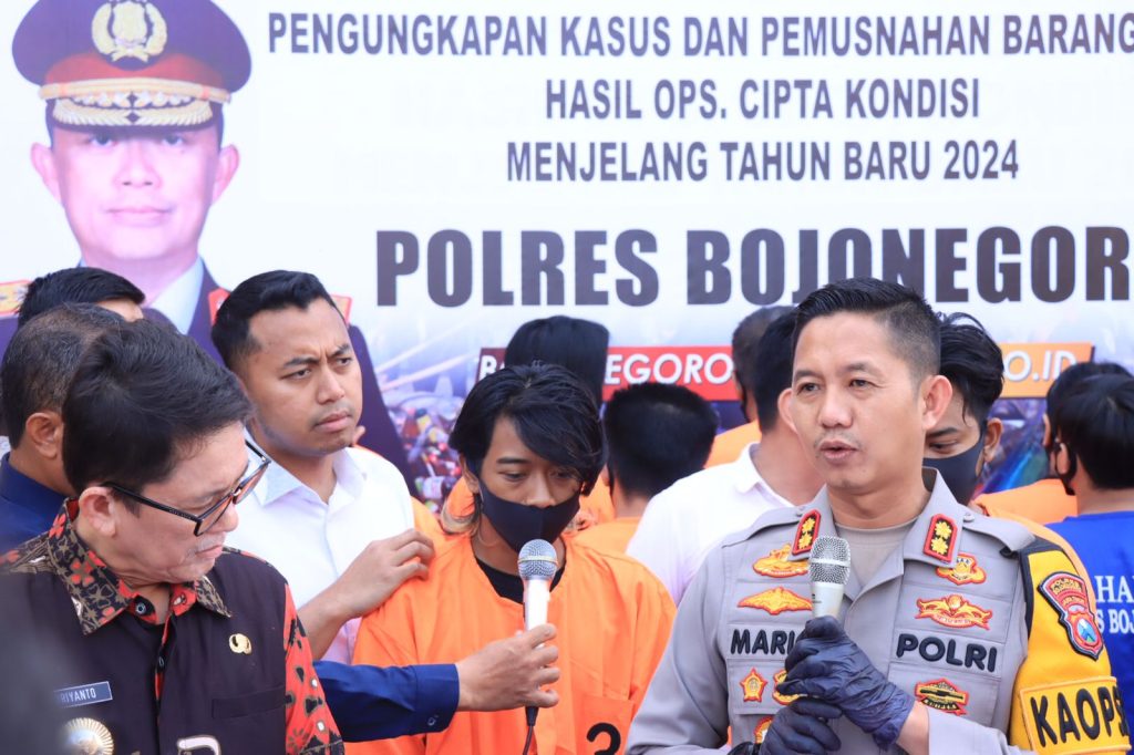 Dalam konferensi pers tersebut Kapolres bojonegoro AKBP Mario Prahatinto, S.H., S.I.K., M.Si mengungkapkan bahwa pihaknya telah berhasil mengamankan 7 (tujuh) orang pelaku diantaranya 4 (empat) orang dewasa dan 3 (tiga) anak dibawah umur.
