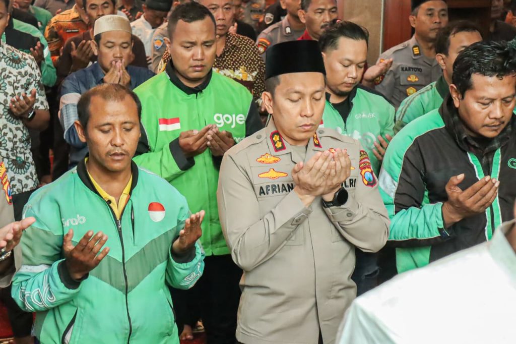 Polres Bojonegoro dan Komunitas Ojol Gelar Salat Gaib untuk Affan Kurniawan