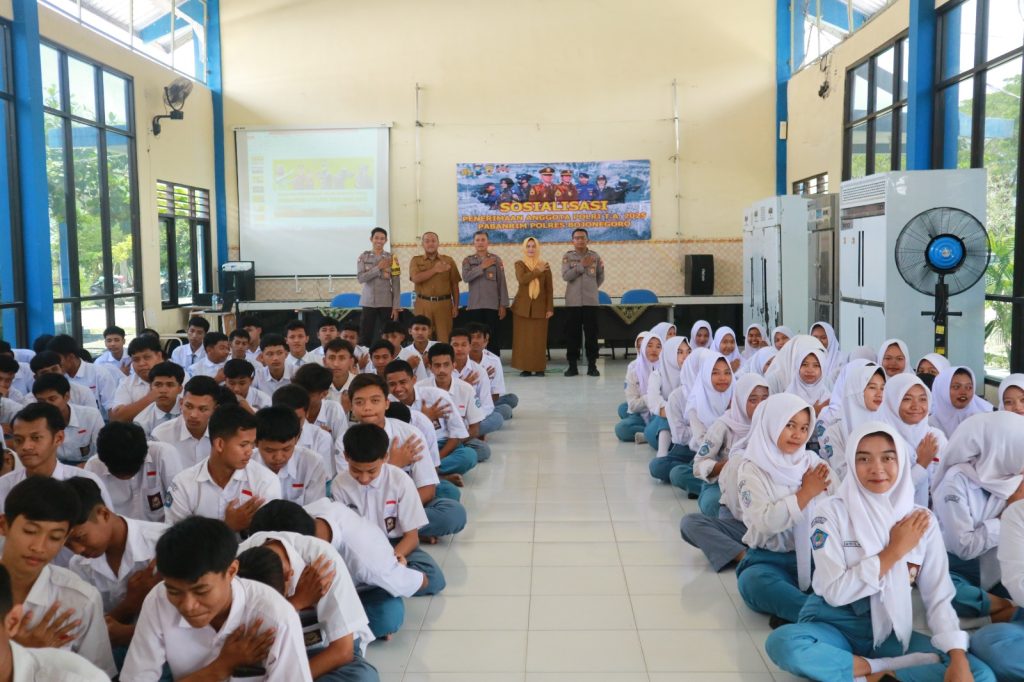 Bojonegoro, — Bhabinkamtibmas Desa Sambiroto Briptu Kenang Dwi G dan tim Sumber Daya Manusia (SDM), menggelar sosialisasi penerimaan calon anggota Polri T.A. 2025. Acara ini berlangsung di Aula APHP SMKN 5 Bojonegoro, Senin (4/11/2024), dan dihadiri oleh para siswa kelas XII, kepala sekolah, guru, dan staf SMKN 5.