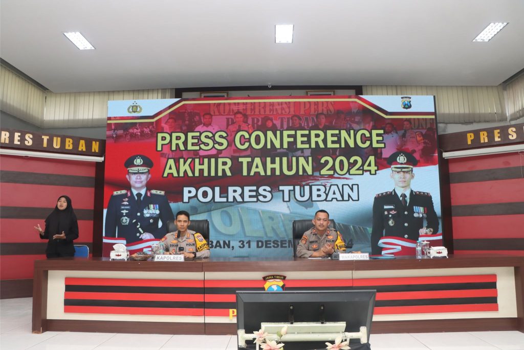 Tuban, – Menutup tahun 2024, Kepolisian Resor (Polres) Tuban menggelar konferensi pers untuk memaparkan pencapaian kinerjanya selama satu tahun terakhir. Bertempat di gedung Sanika Satyawada Mapolres Tuban, kegiatan ini dipimpin langsung oleh Kapolres Tuban, AKBP Oskar Syamsuddin, S.I.K., M.T., dengan dihadiri jajaran pejabat utama Polres dan sejumlah awak media, Selasa (31/12/2024) siang