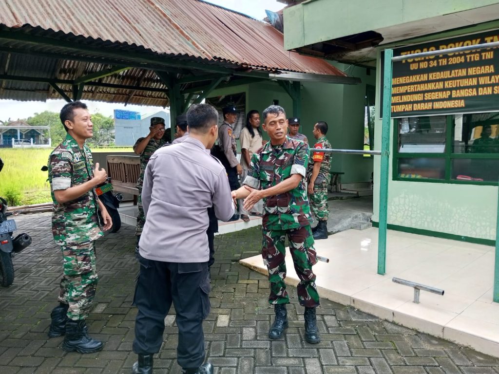 Kapolsek Kedungadem, IPTU H. Sholeh ,S.H bersama personel Polsek Kedungadem mendatangi Koramil 0813-08/Kedungadem dan disambut hangat oleh Danramil, Kapten Inf ilyas Rosidi beserta personel koramil 0813-08/Kedungadem.