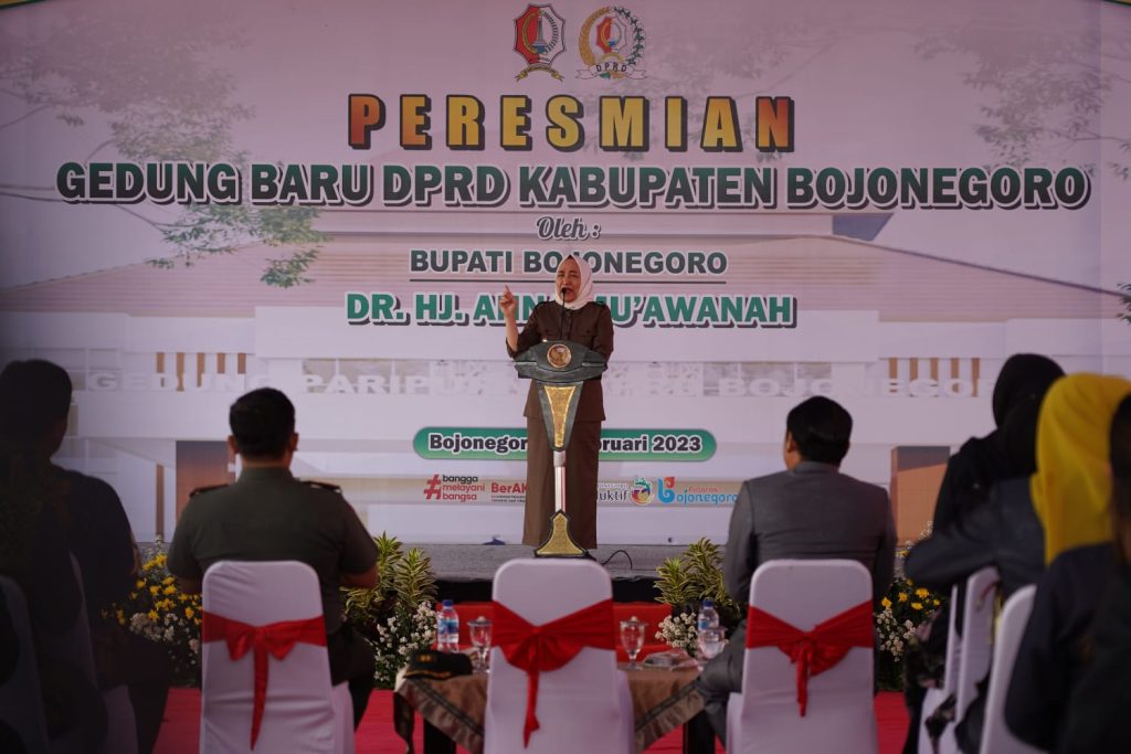Bupati Bojonegoro Anna Mu’awanah mengatakan bahwa dengan adanya gedung baru semoga kinerja DPRD makin bertambah baik. “Gedung baru dengan fasilitas yang memadai, bisa menambah fungsi aspirasi serta inspirasi.”, Pungkas Bupati Bojonegoro. Selanjutnya peresmian gedung baru DPRD ditandai dengan pemotongan untaian melati oleh Bupati Bojonegoro yang didampingi jajaran Forkopimda.(sr/rn)