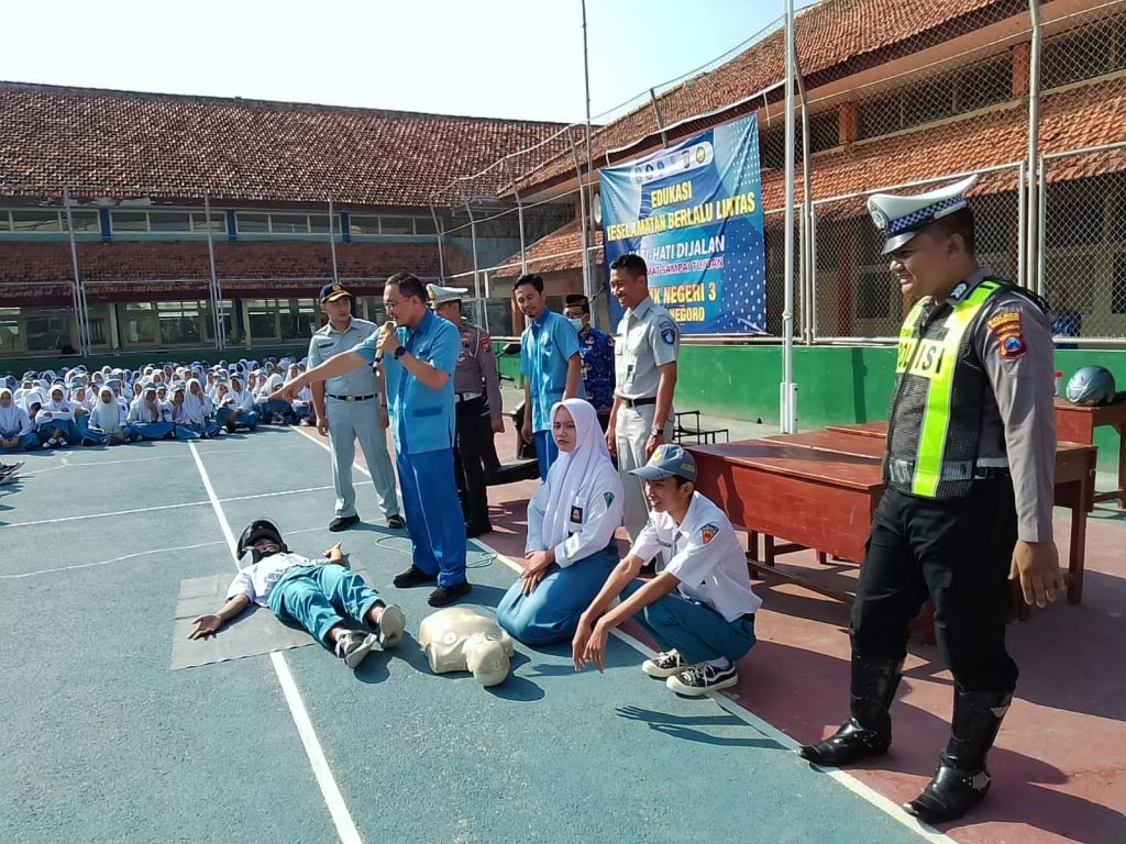 Kegiatan tersebut juga dihadiri PT. Jasa Raharja Cabang Bojonegoro, RS. Aisyiyah Bojonegoro dan diikuti pelajar SMKN 3 Bojonegoro.
