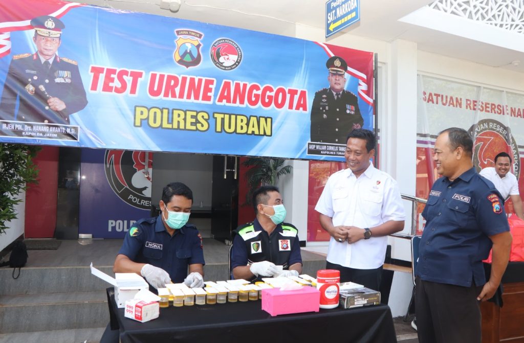 Kapolres Tuban AKBP William Cornelis Tanasale, S.I.K., melalui Kasat Resnarkoba AKP Harjo, S.H., menjelaskan kegiatan ini dilaksanakan dengan tujuan personel Polres Tuban bebas dari penyalahgunaan narkoba.