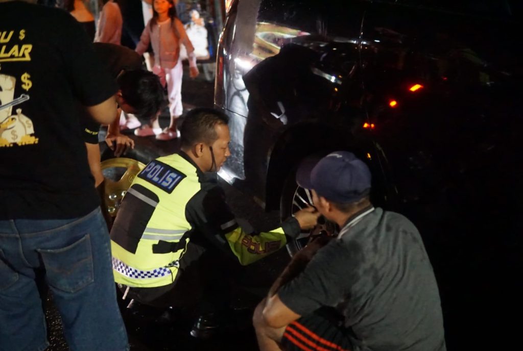 Sigap! Polantas Tuban Bantu Pemudik Ganti Ban Bocor di Jalan Raya