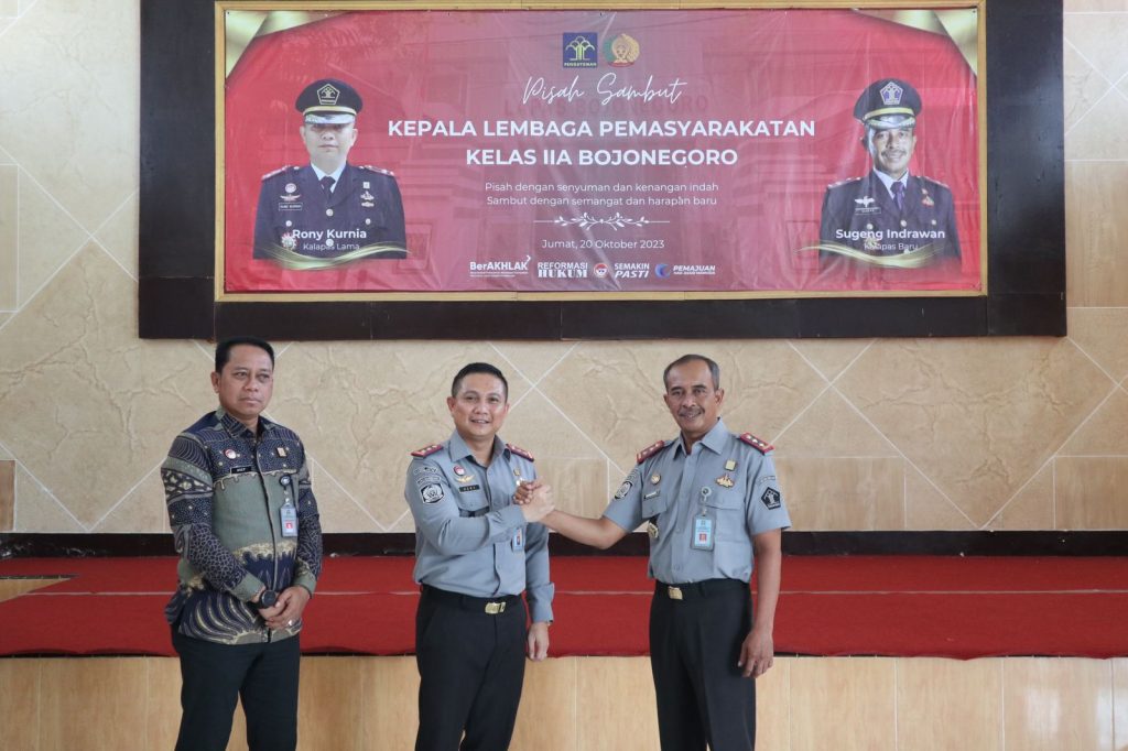 BOJONEGORO– Lembaga Pemasyarakatan Kelas IIA Bojonegoro menggelar kegiatan Pisah Sambut Pimpinan dari Rony Kurnia kepada Sugeng Indrawan sebagai Kepala Lembaga Pemasyarakatan yang baru, bertempat di Aula Lembaga Pemasyarakatan Kelas IIA Bojonegoro, Jum’at (20/10).