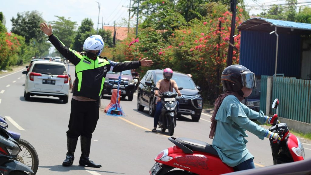 Dalam pengaturan lalu lintas tersebut, petugas memberikan imbauan kepada pengendara untuk selalu tertib berlalu lintas demi menghindari kemacetan dan kecelakaan.